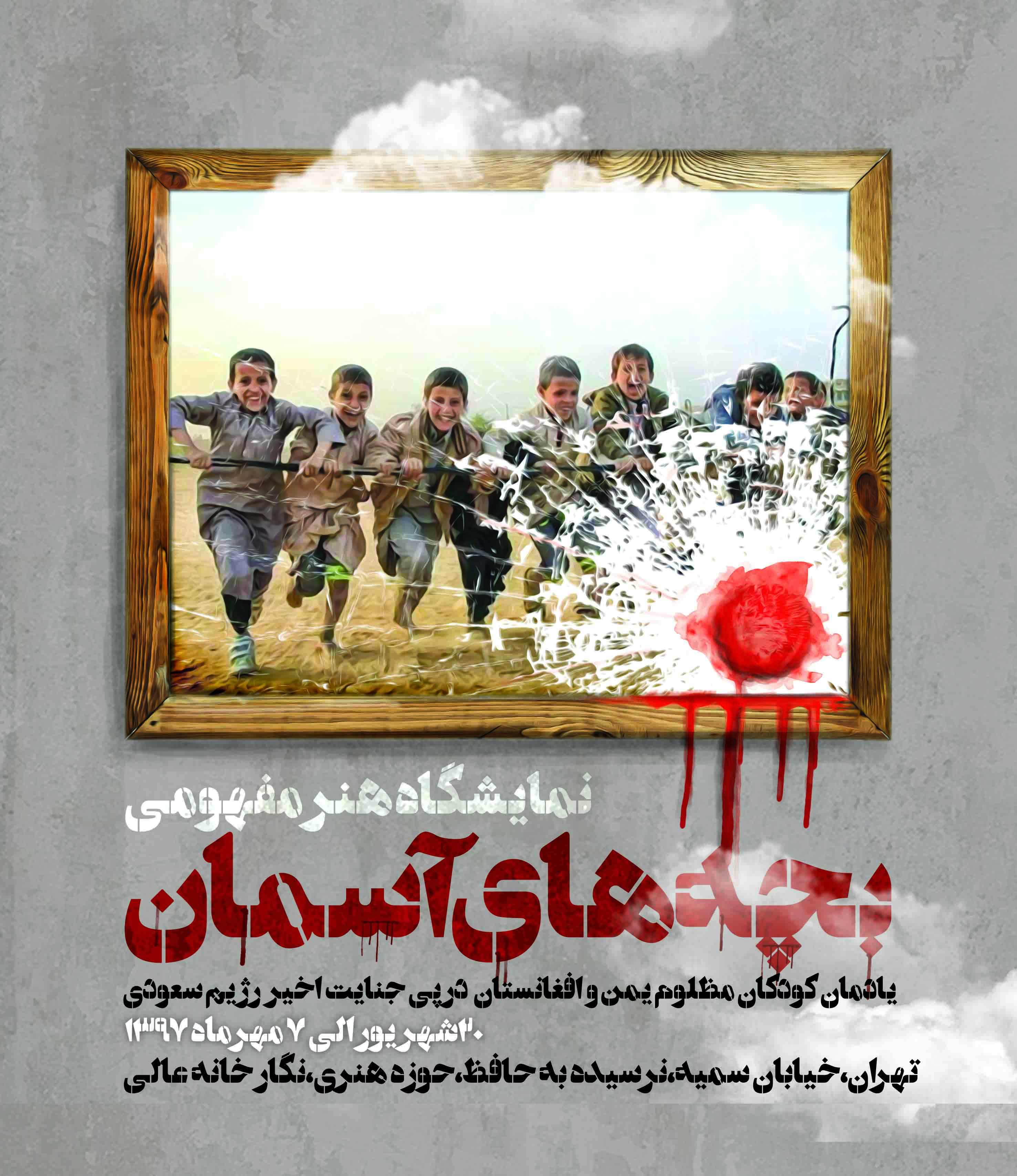 به دنبال جنایت اخیر رژیم سعودی در بمباران اتوبوس حامل کودکان یمنی که منجر به شهادت چندین نفر از کودکان شد، نمایشگاه هنر مفهمومی «بچههای آسمان» با هدف محکوم کردن رژیم سعودی و توجه دادن به بیتفاوتی سازمانهای حقوق بشری نظیر یونیسف برگزار خواهد شد.این در حالی است که مجامع حقوقی بینالمللی هیچ واکنشی نسبت به این جنایات نداشتهاند و مقام معظم رهبری در رابطه با این جنایتها اظهار داشتند؛ کار این روزهای دولت سعودی در یمن، مشابه جنایت صهیونیستها در غزه است.