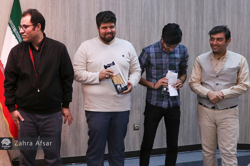 در پایان با رایگیری از حاضران در سالن آثار آقایان فرهاد موحدی، امین شفیعی، علی بهاری و رضا عیوضی صاحبان آثار برتر شدند و با اهدای جوایز نقدی و یک بسته ماکارانی _در واکنش به گرانی اخیر این محصول_ از آنها تقدیر شد.