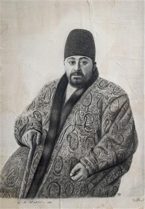 عنوان اثر : تکچهره میرزا عبدالوهاب خواجه نوری (نظام‌الملک) سیاه‌قلم و پرداز روی کاغذ