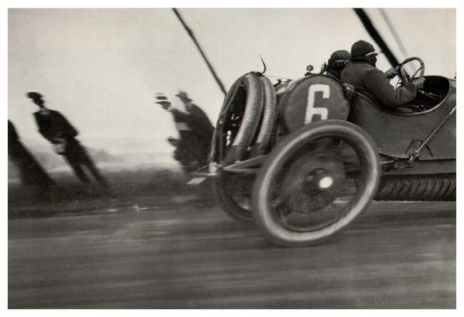 این عکس، تجسم سرعت است. در واقع، ظاهر عکس نیز با سرعتی که نشان داده شده، پیوند خورده است. "ژاک آنری لارتیک" این عکس را زمانی که بسیار جوان بود گرفته است؛ او اعجوبه ی جوانِ عکاسی بود. عنوان موجز عکس، گرَند پریکس؛ کلوپ ماشین فرانسه، صرفا درباره ی رویداد می گوید و توضیح نمی دهد که اتفاق عکس چیست. یک ماشین مسابقه با سرعت می گذرد، کاپوت ماشین از کادر عکس خارج شده، چرخ های عقب به شکل تخم مرغی، معوج شده و تماشاگران در آن طرف خط، به شکل محو کنار هم ایستاده اند. (اعوجاج بصریِ تصویر به خاطر سرعت شاتر پایین دوربین است.) کشش امتدادی و بسیار زیاد سوژه در عکس، که شکل اریب دارد، کل تصویر را پر کرده است؛  هیچ بخش تصویر ثابت و ایستا نیست و تنها تکیه گاه عکس، زمین محو و خط خطی ست.